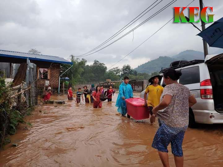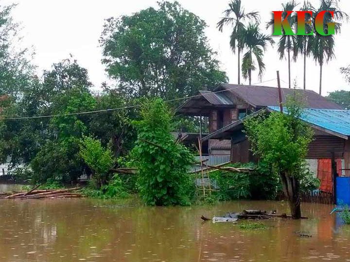 ကချင်ပြည်နယ်၊ မြစ်ကြီးနားမြို့အနီး ဧရာဝတီမြစ်ရေမြင့်တက်မှုကြောင့် မြစ်ကြီးနားမြို့အတွင်းရှိ ရပ်ကွက်အချို့ ရေဝင်ရောက်လာသဖြင့် ဘေးလွတ်ရာသို့ ပြောင်းရွှေ့နေထိုင်နေရသည်။ ယခုအချိန်တွင် လယ်ကုန်းရပ်ကွက်၊ ရမ်ပူရပ်ကွက်နှင့် ကြက်ပေါင်ခြံရပ်ကွက်တို့တွင် မြစ်ရေဝင်ရောက်မှုကြောင့် ၄င်း‌ရပ်ကွက်များရှိ ပြည်သူလူထုများသည် ဘေးလွတ်ရာသို့ တိမ်းရှောင်နေရပါသည်။